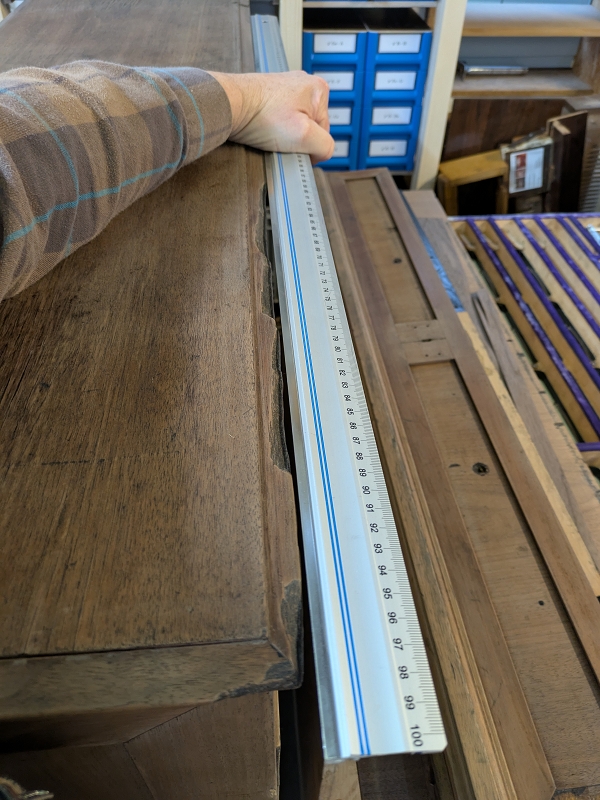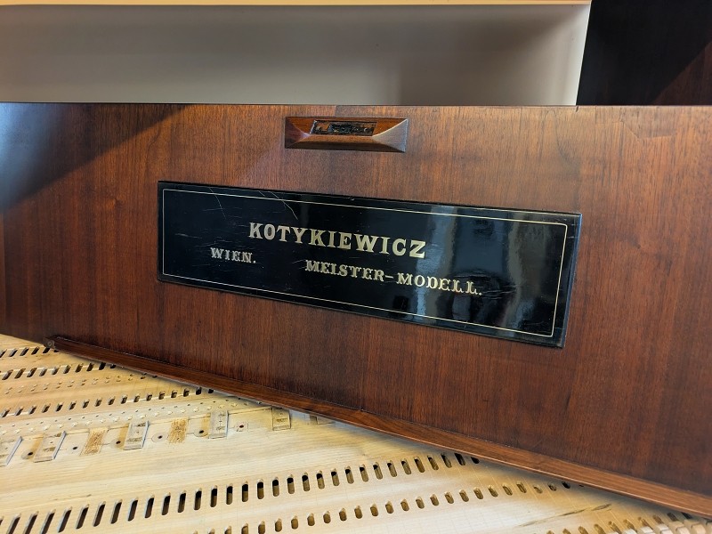 Hier läuft gerade der Leder- und Papierzuschnitt für den Magazinbalg.