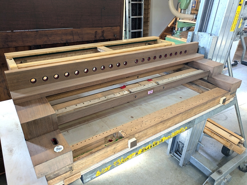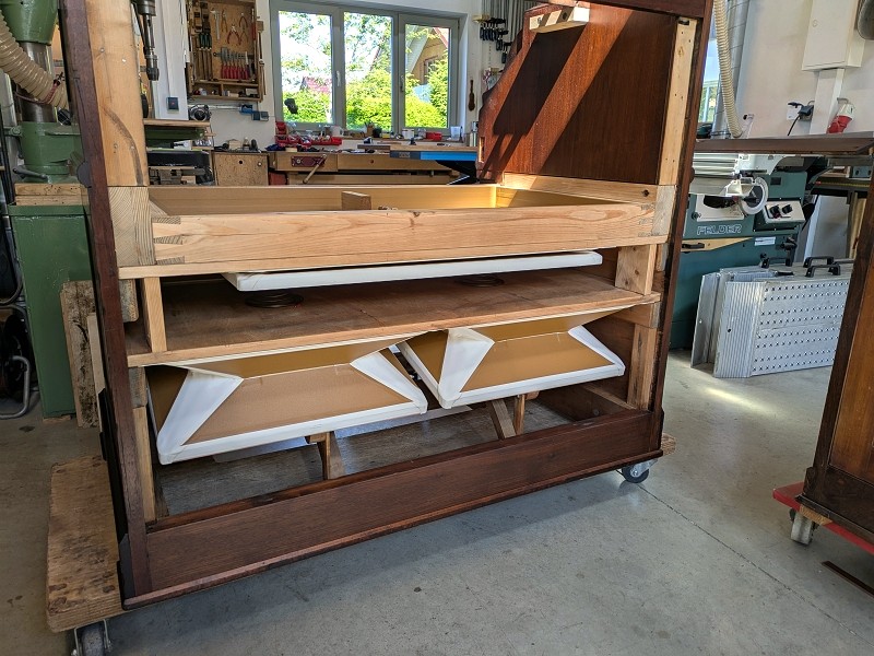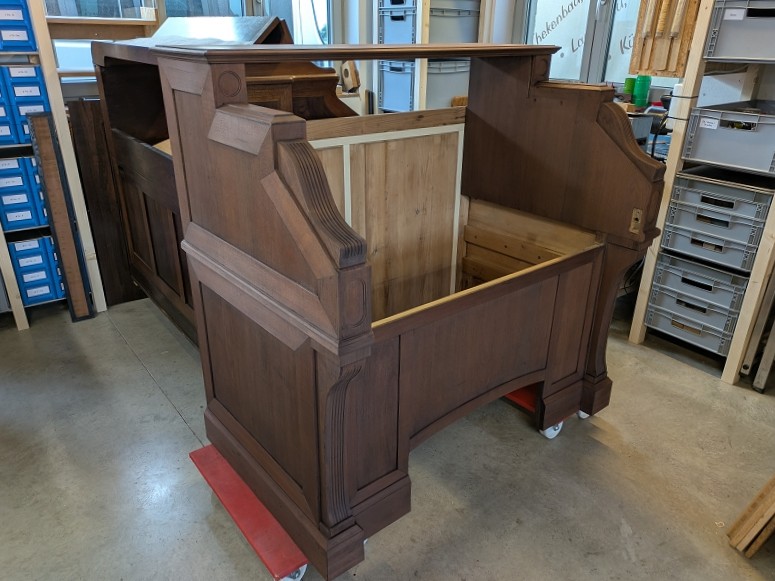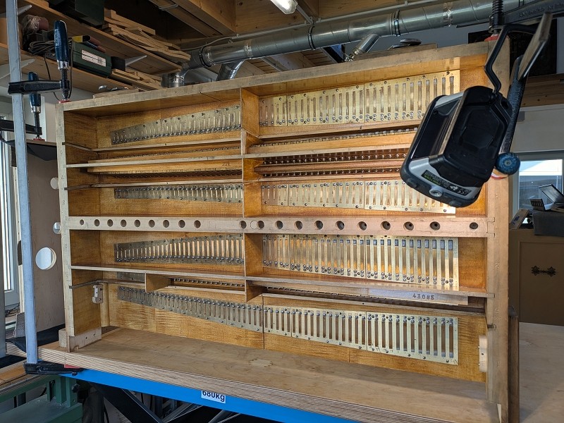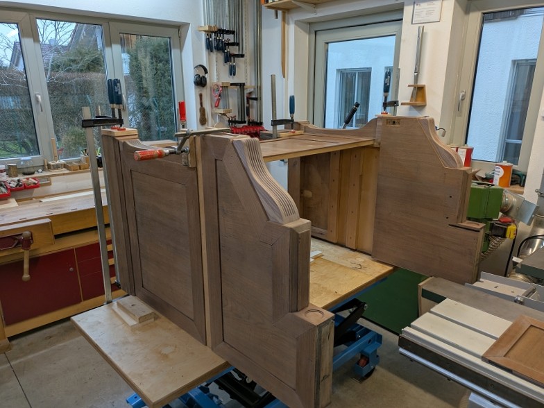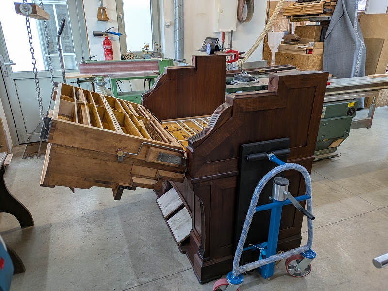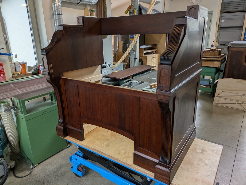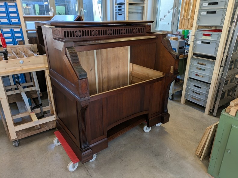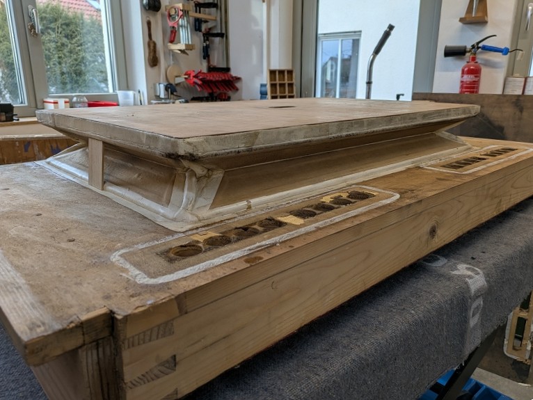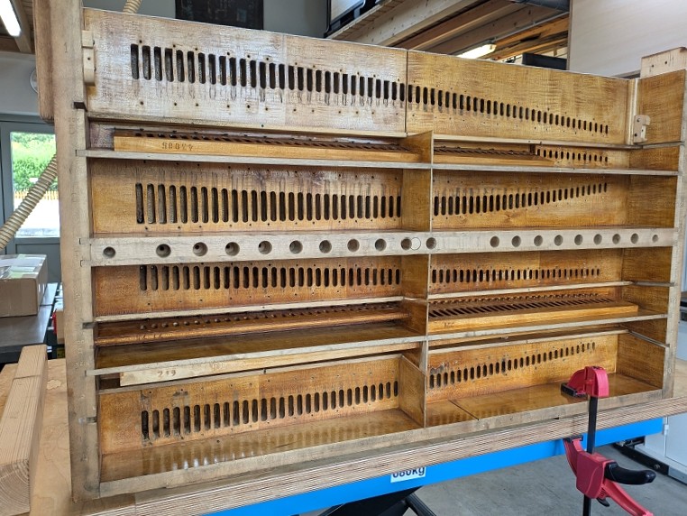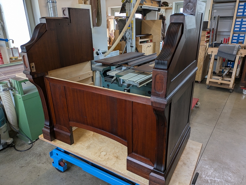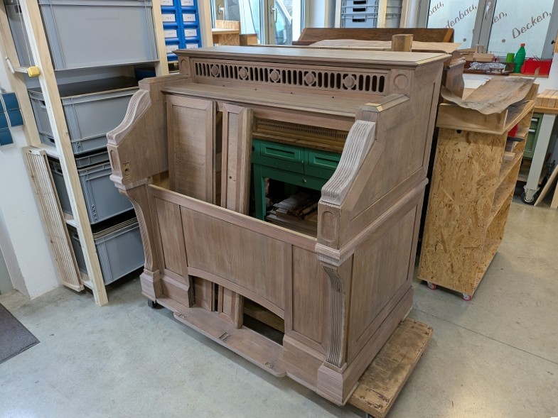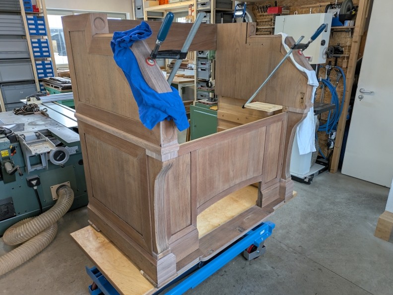 Währenddessen ging die schreinerische Sanierung am Gehäuse weiter.