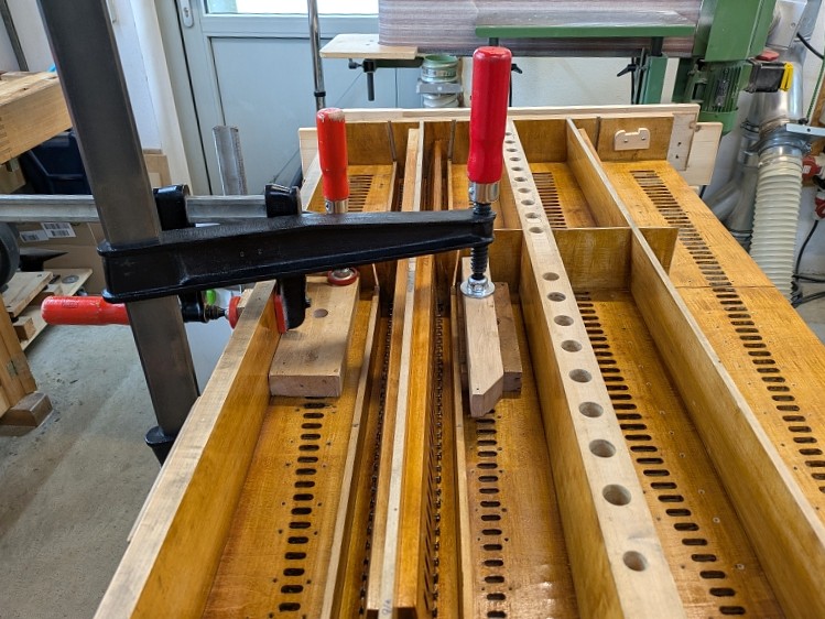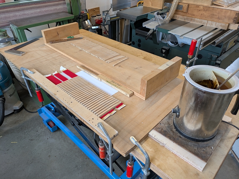 Hier sind die Holzfalten schon auf den Balgplatten fixiert und die