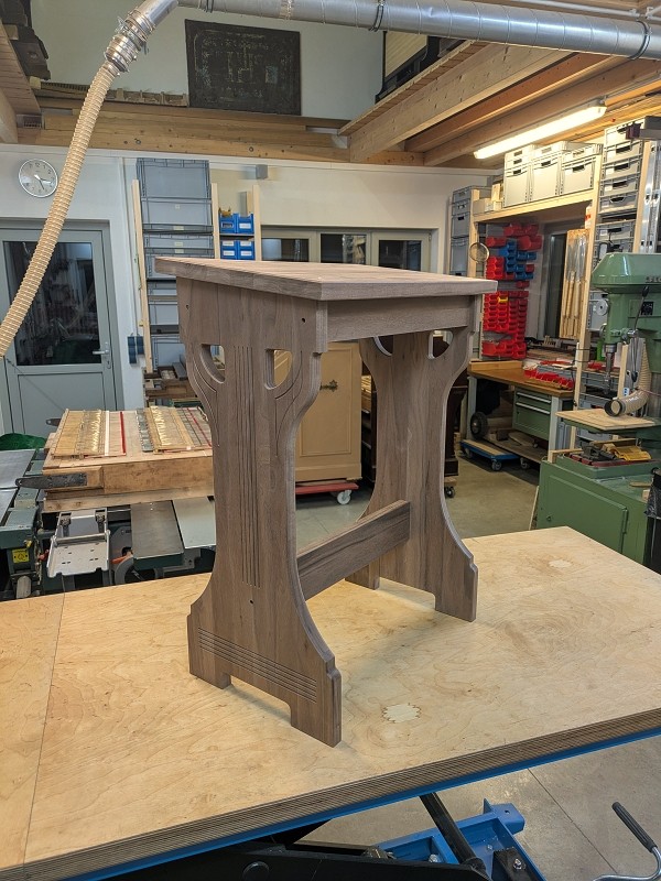 Nach drei Politurdurchgängen war der Hocker fertig.