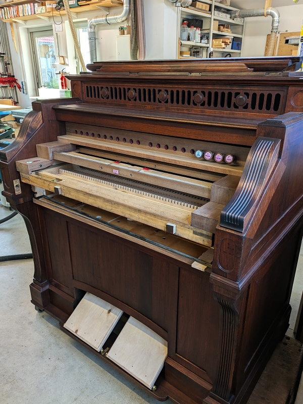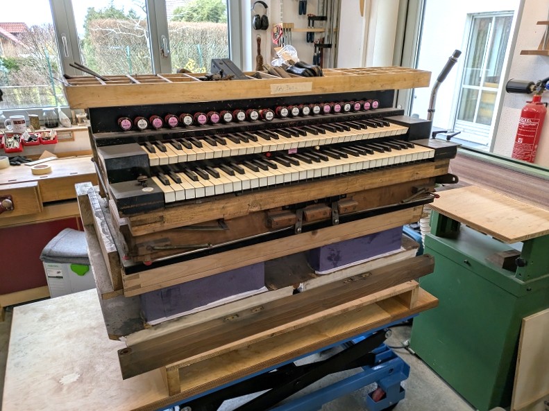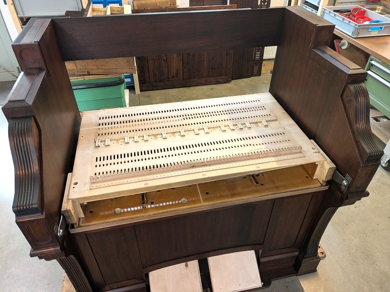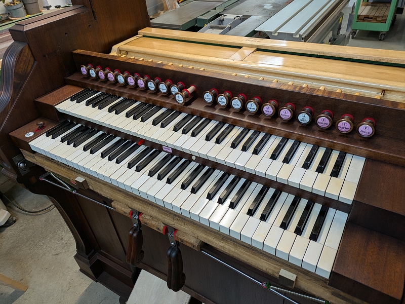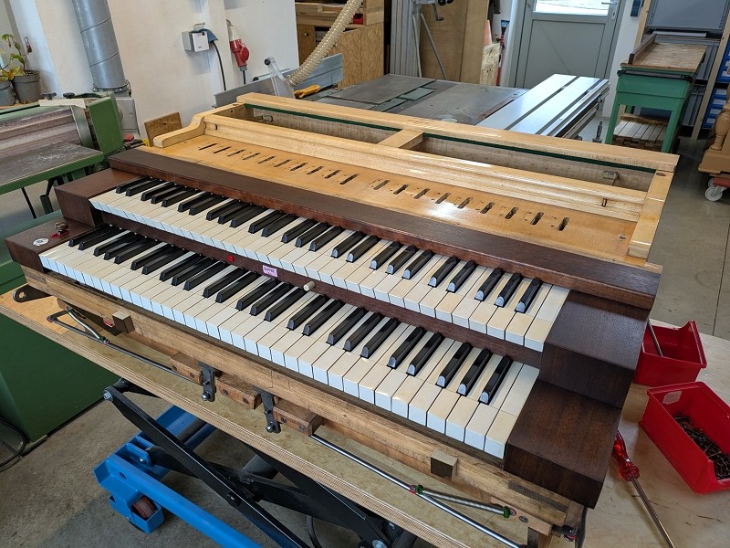... dann ging es an die Poitur der Tastenbeläge (hier Obermanual).