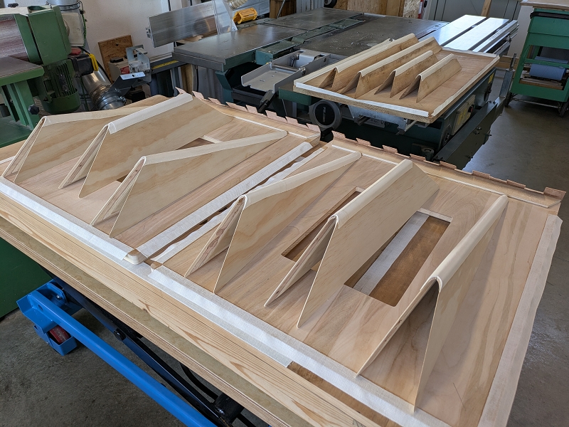 Nach dem Verleimen der Plattenscharniere, konnten die Holzfalten auf