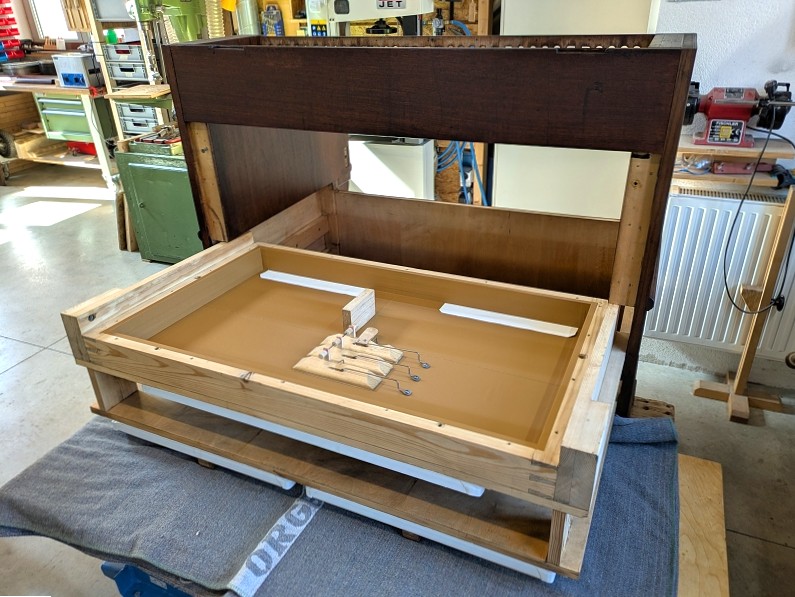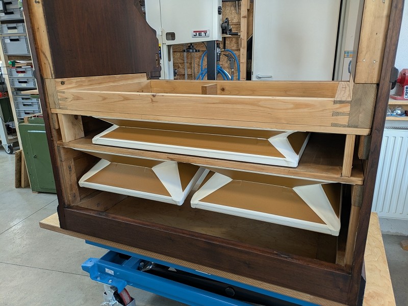 Im nächsten Schritt wurde die Lade wieder mit ihren Anbauteilen (hier