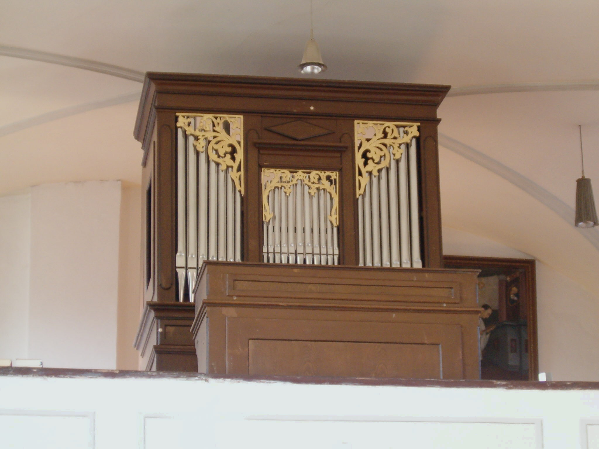 | Als ich das erste mal zu dieser Orgel gerufen wurde, war diese fast komplett unspielbar. Töne heulten, Register ließen sich nich abschalten, andere nicht ziehen. Pedalspiel war aufgrund der beengten Platzverhältnisse kaum möglich. |