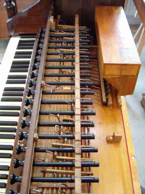 li: Nach Abschluss der Stimmarbei-ten konnte die nun wirklich gereinigte Register-mechanik aufgesetzt werden. |