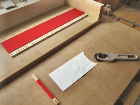 Auch hier hatte der Wasserschaden ganze Arbeit geleistet. Durch die Feuchtigkeit waren viele Ventilbeläge am Schlitz verklebt und die Filzauflagen hart und unbrauchbar (Bild li). Also mussten alle Ventile neu belegt werden (Bild re).