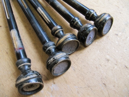 Eine blose Politur half bei den Registerzügen allerdings nicht weiter (li). Nach schwarzer Beize und schwarzem Schellack, erhielten sie abschließend eine Schicht klaren Schellack - also doch polieren.