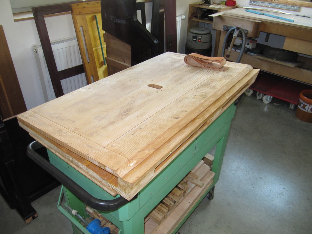 Im nächsten Schritt erhielten die beweglichen Platten neue Scharniere aus Kalbleder.