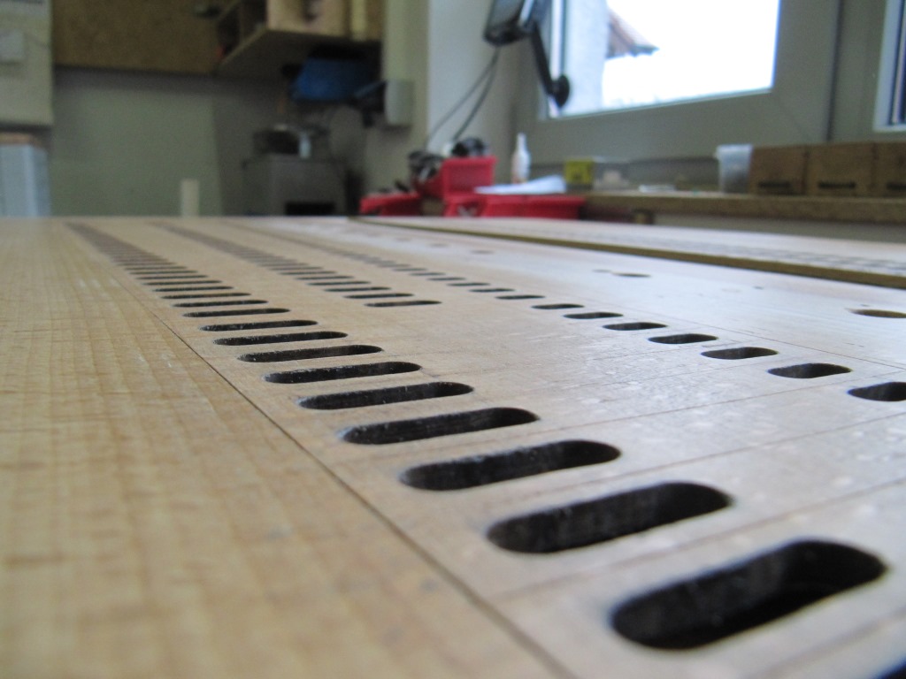 Hier sind die vorderen Spiele bereis verleimt. Die Ventilschlitze sind mit einer dünnen Schicht Leim verschlossen.