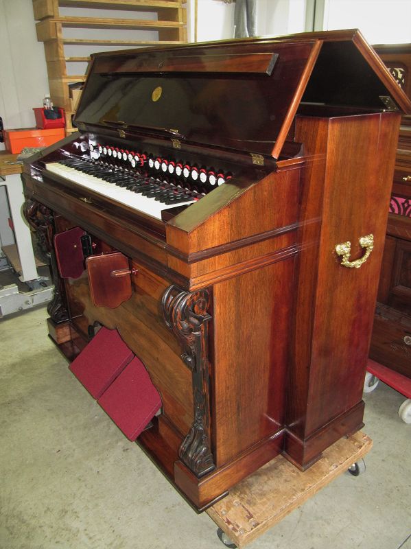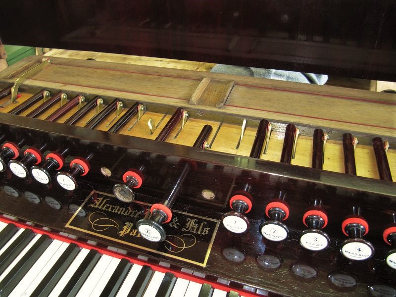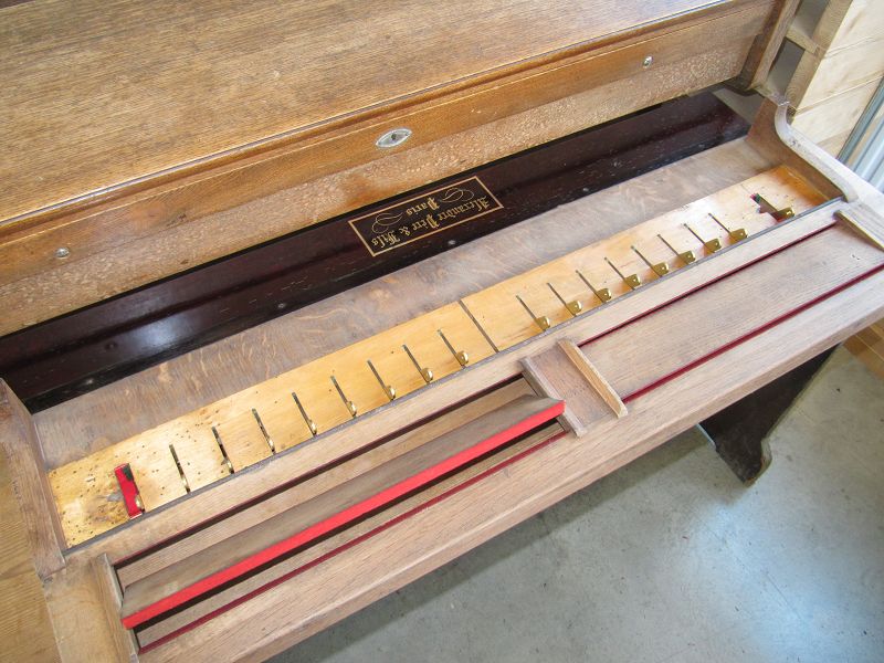 Ein Projekt, auf welches ich mich lange gefreut hatte, war die Restaurierung dieses Alexandre von 1891. Dem Instrument wurde einmal die Percussion geraubt, was nun rückgänging gemacht werden sollte.