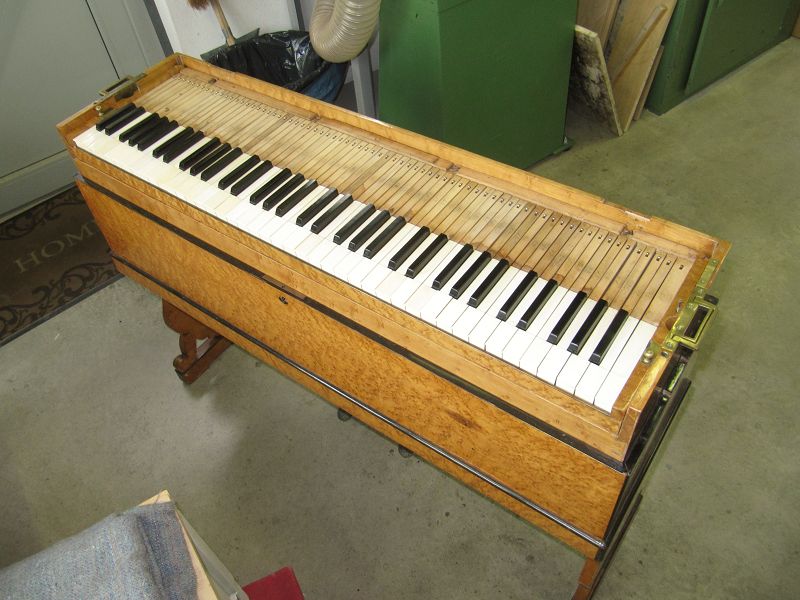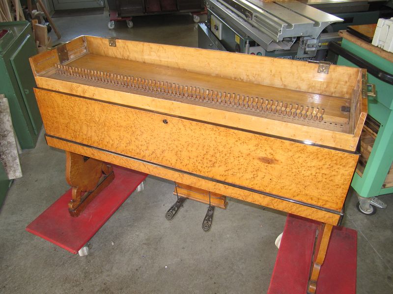 Nach diesen Reparatur- und Rekonstruktionsmaßnahmen, ist das Instrument nun wieder komplett und gut spielbar. Leider habe ich es versäumt, ein Foto vom Instrument in zusammengeklapptem Zustand zu machen. Dann sieht es nämlich aus wie eine hübsche "Holzschachtel" und kann problemlos transportiert werden.