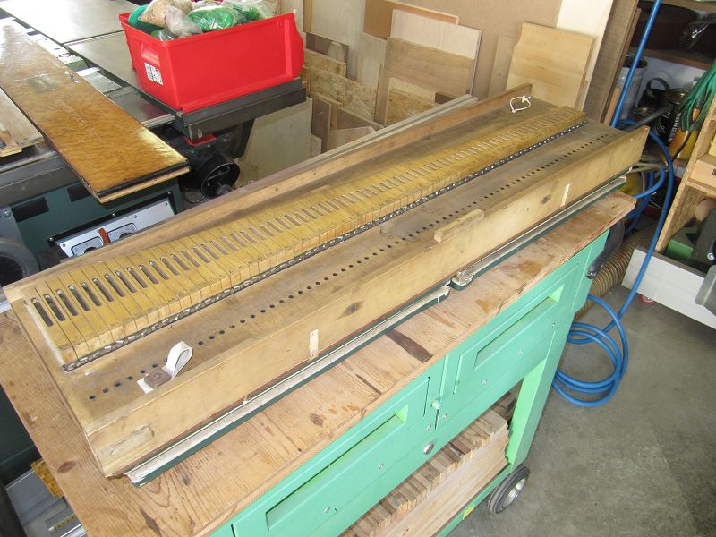 Natürlich wurde auch die Lade selbst gereinigt. Hier sieht man die Oberseite, auf welche die Zungen gesetzt werden.