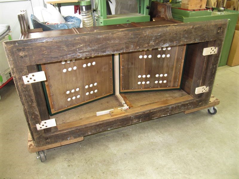 re: Die beim Instrument befindlichen Forteklappen, waren nicht original und passten nicht. Ein mitge-liefertes Ersatzteil konnte passend gemacht werden. Der fehlende Aufsatz wurde nachgefertigt.