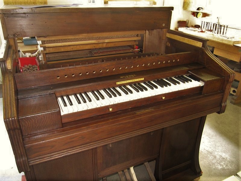Bereits im September 2016 hatten wir mit der Restaurierung dieses Mustel Modellé K begonnen, welche im November 2017 ihren Abschluss fand. Hier ein paar Bilder vom Einlieferungszustand und dem Verlauf der Arbeiten