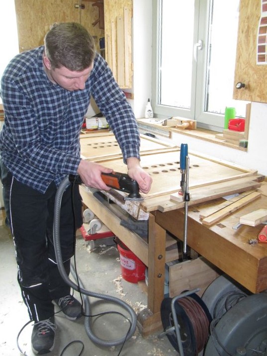 re: Azubi Jonas wurde mit der Beseitigung der alten Bepannung beauftragt. Das alte Gummituch vom Holz zu bekommen, ist selten ein Zucker-schlecken.