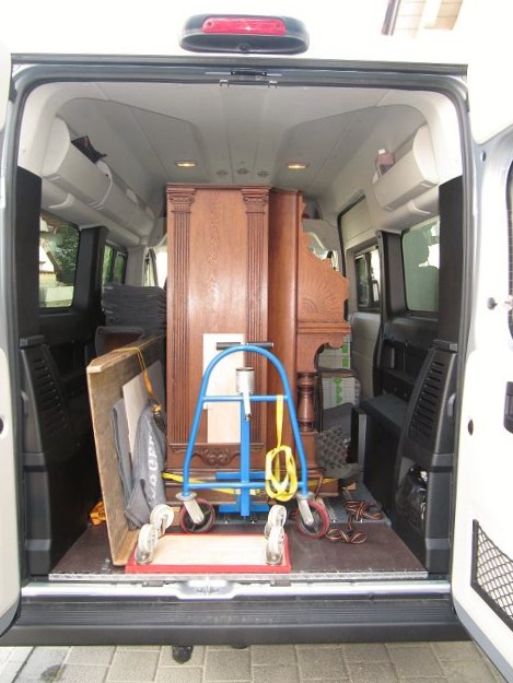 li: Auch in unserem neuen Lieferwagen, ist der Transport solch großer Instrumente kein Problem.