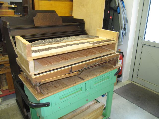 Es muss nicht immer die "große" Restaurierung sein. Schon kleinere Eingriffe können dafür sorgen, dass ein Instrument wieder spielfähig wird. Ob und wie das möglich ist, hängt immer vom Zustand des Instrumentes und den gestellten Erwartungen ab. Dieses Harmonium ist für den gelegentlichen Einsatz (z.B. zu Weihnachten) auf jeden Fall wieder fit.