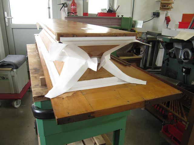 Nachdem so ziemlich jede Verleimung erneuert wurde, erfolgte der Neuaufbau des Balges.