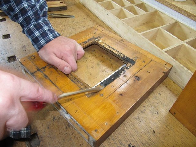 An der Lade selbst wurde alles abgebaut, was abzubauen ging, dann gereinigt, dann Oberfläche.