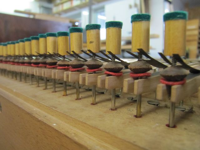 li: Die frisch gereinigte Registermechanik vor der Komplettierung.