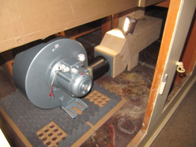 Der neue Motor sitz nun unter einem Verbindungskanal um Unterbau der Orgel.