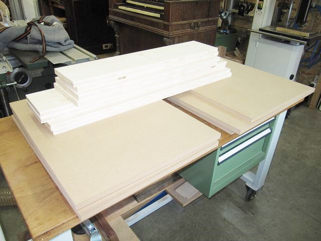 Hier liegt schon das vorbereitete Material für die Motorkiste und den Verbindungskanal.