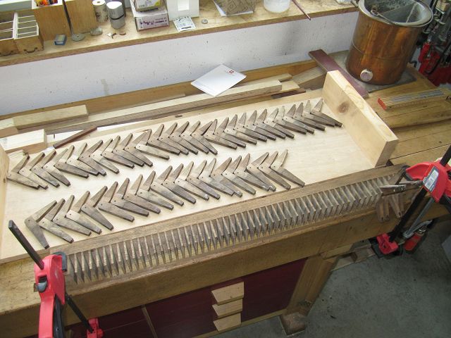 Endlich ein besseres Foto! Hier kann man gut die Trakturbahn, die Mechanikwinkel und den darunter sitzenden Trakturrechen erkennen.