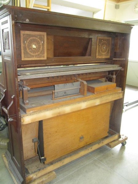 Doch schon hier erwies sich die Mechanik als sehr ausgefeilt. Ähnlich wie bei Mason & Hamlin, lies sich die Registermechanik wegklappen, um zur Klaviatur zu gelangen.