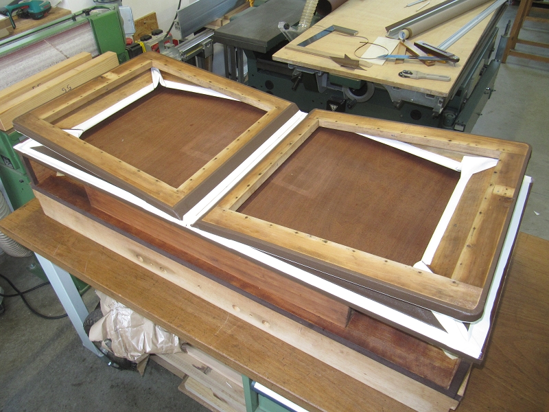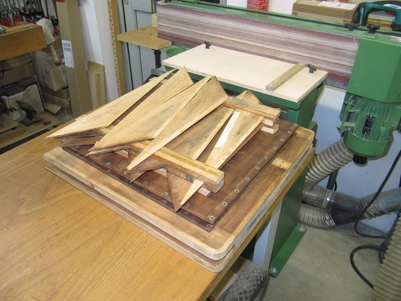 Bevor die Schöpfer auf der Trägerplatte ausgerichtet und befestigt wurden, musste eine passende Scharnierunterlage (für die Rahmen) angefertigt werden.