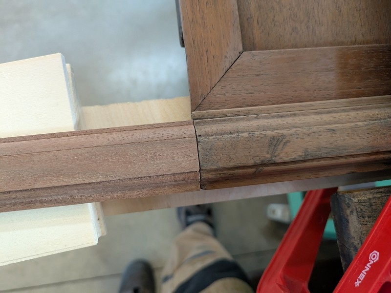 Am Deckel wurde zunächst das Profil ergänzt und dann das alte Furnier