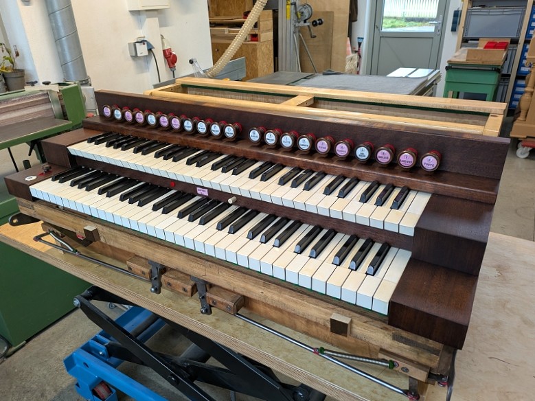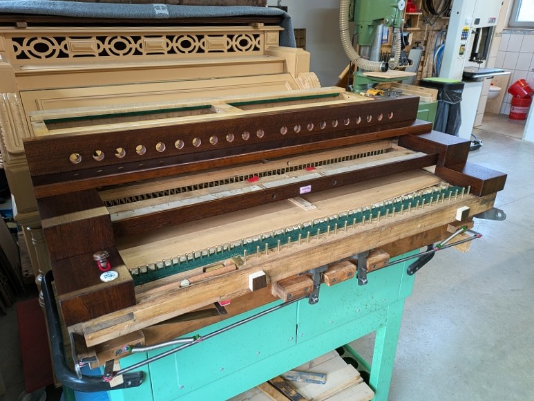 ... dann ging es an die Poitur der Tastenbeläge (hier Obermanual).