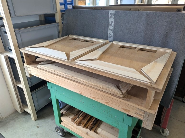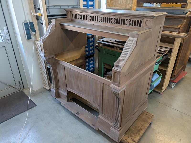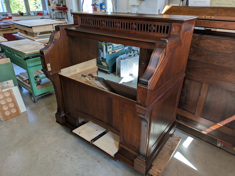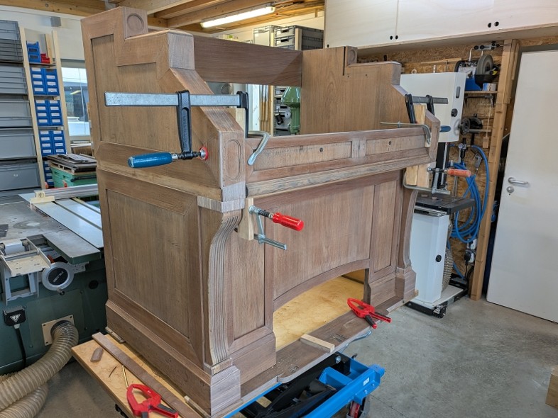 Währenddessen ging die schreinerische Sanierung am Gehäuse weiter.