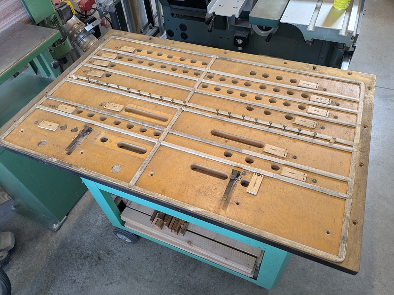 Hier läuft gerade der Leder- und Papierzuschnitt für den Magazinbalg.