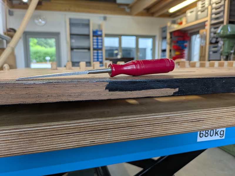 gut. Im Hintergrund liegt die neu furnierte hintere Bodenleiste.