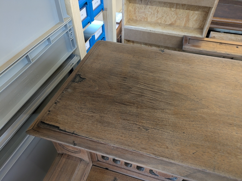 Weiter ging es mit dem Öl. Hier liegen neue und alte Furnierflächen